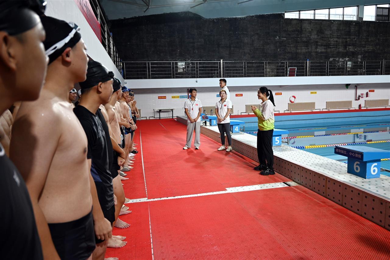 행사가 끝난 후 Liu Huixia는 학생들의 수영 강습을 관찰하기 위해 수영장으로 갔습니다 그녀는 급우들과 진심으로 소통하고 모든 사람에게 "인생에서 어려움에 직면하는 것처럼 물 속에서 균형을 익히십시오 반복적인 연습이 필요하며 절대 포기하지 않아야 합니다"라고 격려했습니다