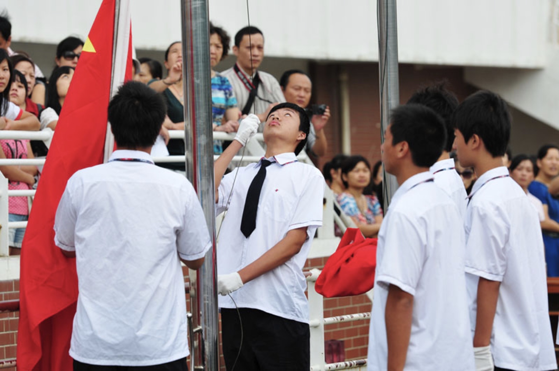 그림 4, 국기 수업의 학생들은 깃발을 올립니다
